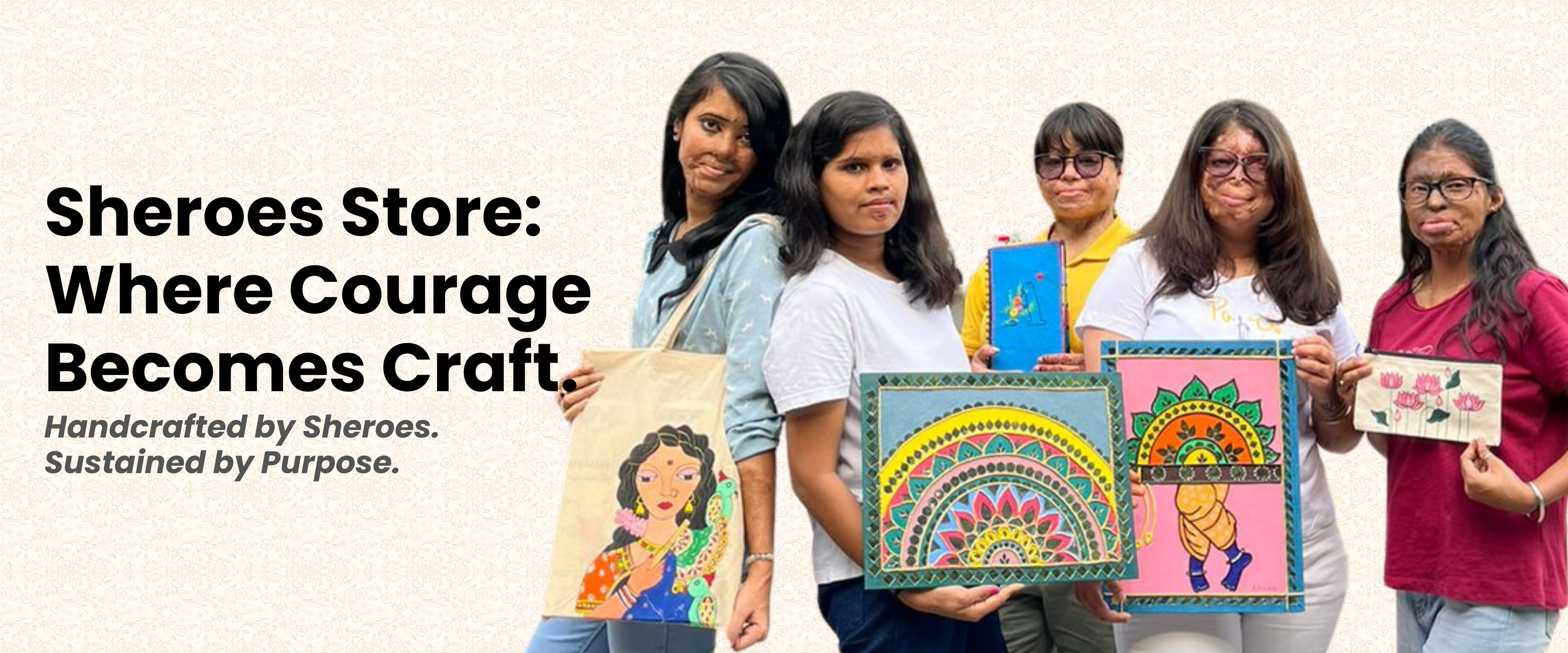 Sheroes Store is an empowering online shopping space proudly launched by Chhanv Foundation that works for the holistic rehabilitation of acid attack survivors since 2013. This platform is more than just an e-commerce site; it celebrates creativity, courage, and entrepreneurship. At the Sheroes Store, survivors will present their artistic talents and generate a sustainable livelihood with dignity and pride.